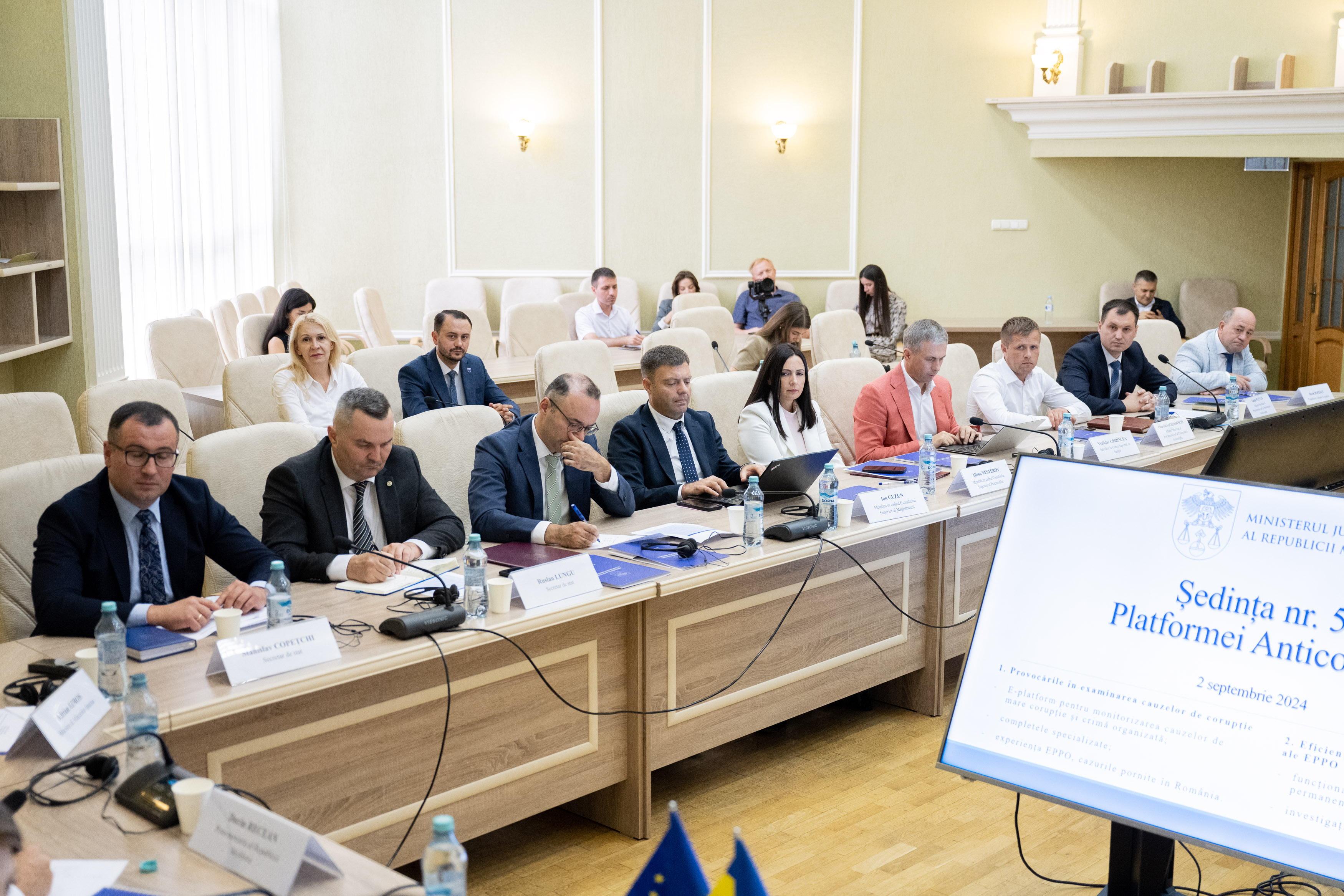 2 septembrie 2024, Chișinău – Provocările în investigarea cazurilor de corupție și eficiența instrumentelor investigative ale Parchetului European au fost principalele subiecte discutate în cadrul celei de-a cincea ședințe a Platformei Anticorupție. Evenimentul, găzduit de Ministerul Justiției, a fost deschis de prim-ministrul Dorin Recean, ministra Justiției Veronica Mihailov-Moraru, și procurorul-șef al Parchetului European, Laura Codruța Kövesi.